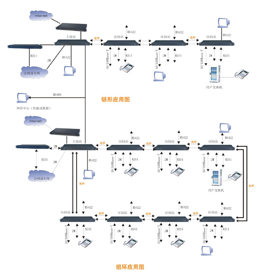 華光高科電子有限公司近期推向市場的新產(chǎn)品系列,它包括主端箱、輔端箱、中繼箱和音頻擴(kuò)展箱、2M擴(kuò)展箱5種主要設(shè)備。這些設(shè)備的不同組合,可以組成點(diǎn)對點(diǎn)、鏈型、環(huán)型不同的網(wǎng)絡(luò)拓?fù)浣Y(jié)構(gòu),連接環(huán)型網(wǎng)絡(luò)時(shí),具有自愈保護(hù)功能(保護(hù)倒換時(shí)間小于50ms)。能實(shí)現(xiàn) 2M、10/100M以太網(wǎng)、2/4線音頻、FXO和FXS 等多種業(yè)務(wù)接口的綜合傳輸。這些設(shè)備都采用19英寸1U 標(biāo)準(zhǔn)機(jī)箱,統(tǒng)一網(wǎng)管,易于安裝,便于維護(hù),并且具有完善的網(wǎng)管告警功能和環(huán)回測試功能,可用于廣電、各電信運(yùn)營商的公用網(wǎng)和公安、部隊(duì)、電力、鐵路公路交通、金融、政府及具有分支機(jī)構(gòu)的企事業(yè)單位的專用網(wǎng)。特別是對于10/100M以太網(wǎng)接口要求較多、可靠性高、有自愈保護(hù)功能、以太網(wǎng)傳輸通道需要相互獨(dú)立的應(yīng)用場合,具有明顯的優(yōu)勢。