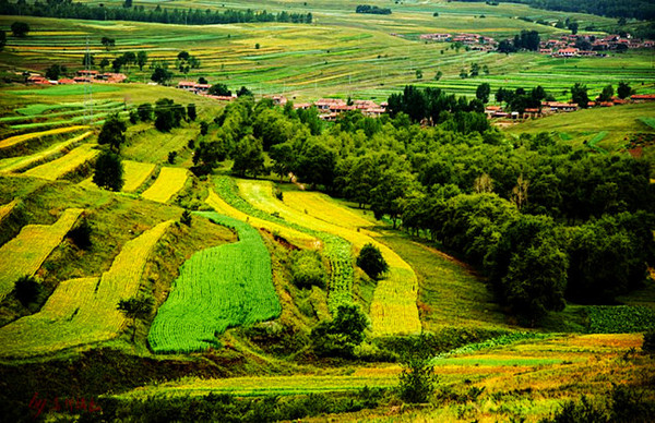梯田是北方不多見的風(fēng)光之一,如果不是草原天路,不知道還要跑多遠(yuǎn)才能看到這樣的美景。夏天的顏色還只有翠綠色的單一,但依然能看得見分明的層次。