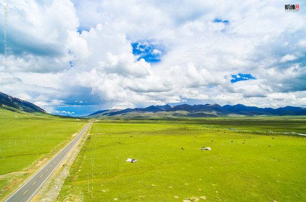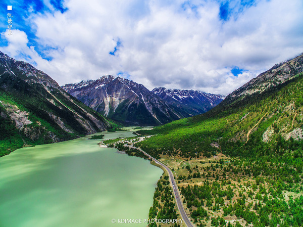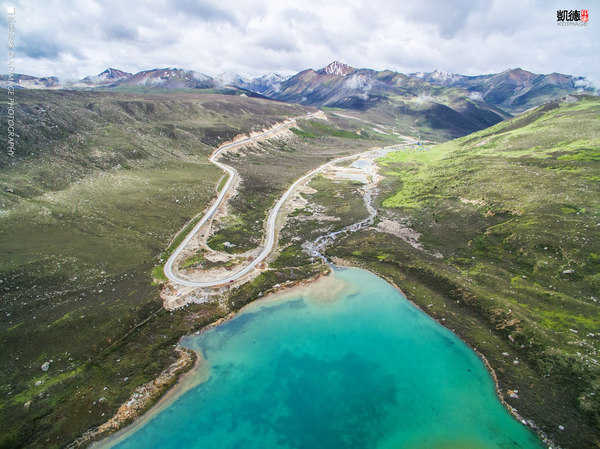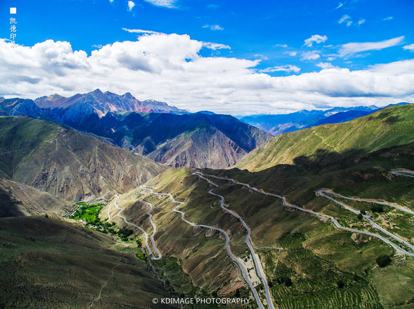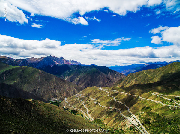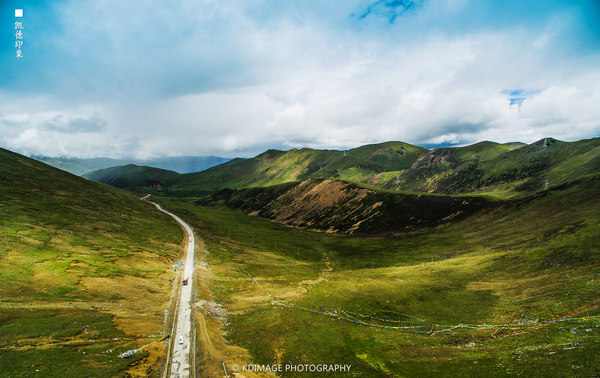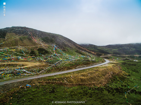 經(jīng)幡飄揚(yáng)在這個(gè) 五千多米的山口,周圍是連綿的山脈還有雪山。埡口的風(fēng)很大,氣溫低了很多,在這里連走路都會(huì)氣喘吁吁。我們?cè)谶@個(gè)海拔放飛無(wú)人機(jī),第一次挑戰(zhàn)這么高的海拔,還是有點(diǎn)膽戰(zhàn)心驚的,幸好還是安全返航。廣闊的綠色草甸和延綿的318國(guó)道看著讓人心情舒暢。