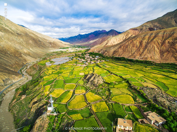 “八宿”藏語(yǔ)意為“勇士山腳下的村莊”。八宿屬三江流域高山峽谷地帶。我們?cè)?18國(guó)道上一路飛馳,來(lái)到八宿,已經(jīng)天黑,只是黃昏前看到的綠色山谷,和周邊光禿禿紅色的山體形成鮮明的對(duì)比,于是第二天一早決定來(lái)航拍一次,俯瞰這奇特的地貌。