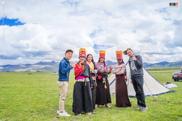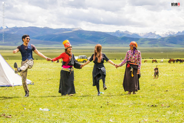 如此遼闊的場(chǎng)景,讓人不禁放聲歌唱。劇組的化妝師婷婷在唱了一曲《青藏高原》,把周邊放牧的藏民朋友們都吸引過(guò)來(lái)了。大家就像開(kāi)嘉年華一樣,在草原上一起跳舞。其實(shí)蠻羨慕牧民們的生活,自由自在,奔放熱情。