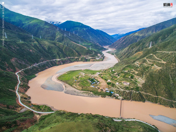 只要過(guò)橋,就進(jìn)出一次西藏了。兩岸有許多的大拐彎。我們?cè)诮吰痫w。拍攝這里的梯田,在如此艱險(xiǎn)的地段都能夠生活下來(lái),需要多少的努力和汗水。